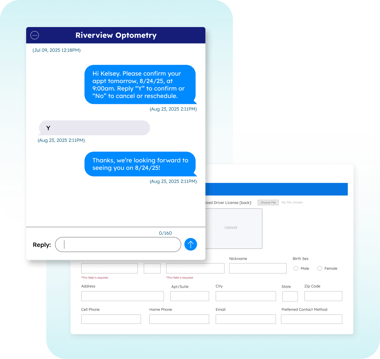 Keep patients informed and engaged through two-way text messaging. Send appointment reminders, recalls, eyewear-ready alerts, and post-visit surveys directly within Crystal PM. Staff can view message history and respond directly, ensuring no communication slips through the cracks.