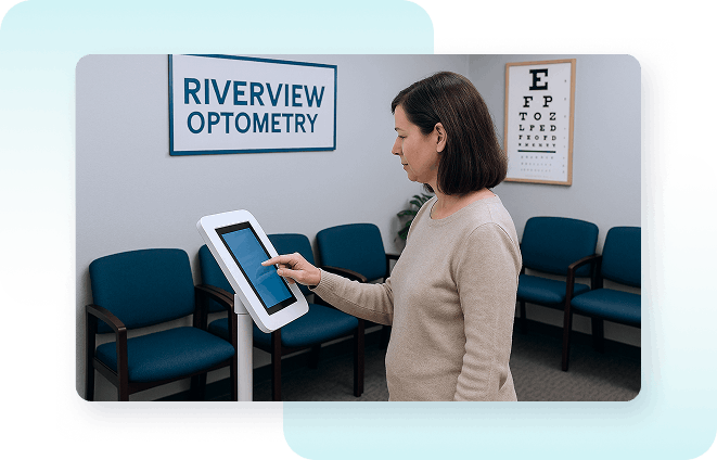 Let patients confirm arrival or complete intake through our kiosk integration. No more clipboards or crowded front desks.