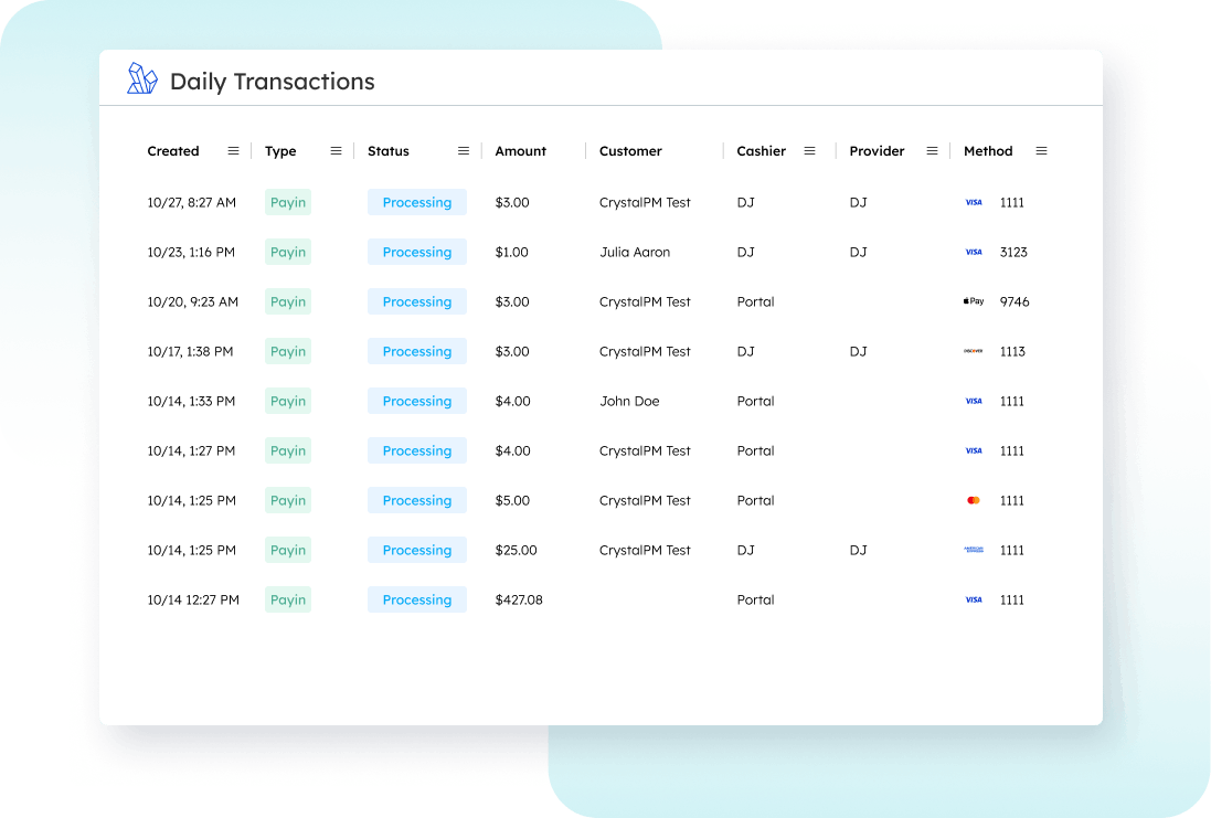 Manage all payment transactions directly within Crystal PM. Your staff can process payments at check-in, during exams, at checkout, or via email without leaving the system, ensuring everything posts to the correct patient record automatically.