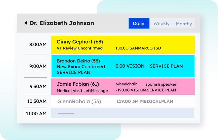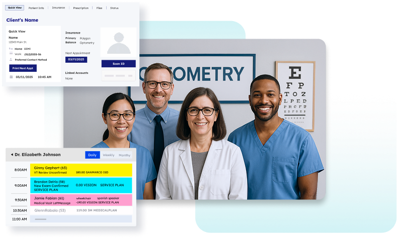 Seamless scheduling, exams, billing, and optical inventory in one system that reduces clicks and keeps everyone on track.